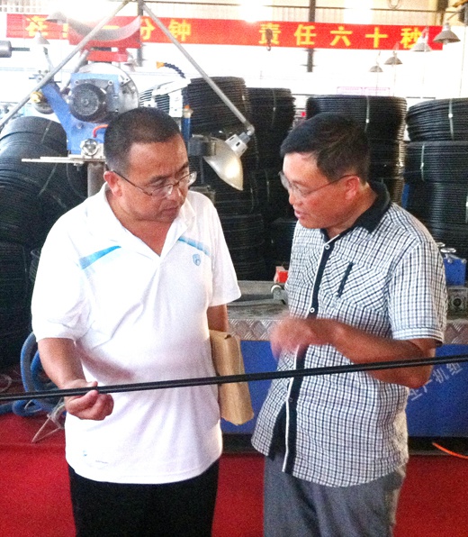 2011年8月7日,國(guó)家水利部杜主任、自治區(qū)農(nóng)機(jī)局侯主任、農(nóng)業(yè)大學(xué)李教授在赤峰市水利局白賽音所長(zhǎng)的陪同下來(lái)公司考察,對(duì)我公司的生產(chǎn)設(shè)備、質(zhì)量檢測(cè)與控制,以及2011年玉米膜下滴灌工程的實(shí)施情況進(jìn)行調(diào)研。